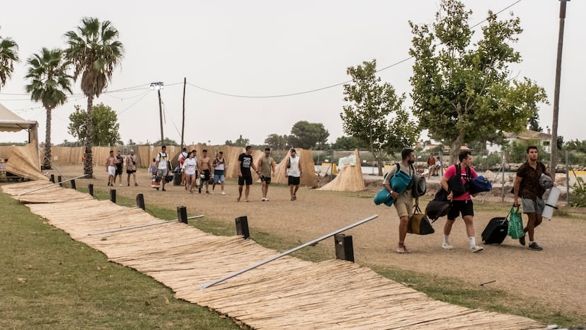 El autobús aparece al fondo del camino, intentando no atropellar a los que arrastran neveras y sombrillas que acuden al punto de recogida como quien persigue un oasis en medio del desierto. Allí se encuentran ya Nerea Carvajal y Noelia Fuentes, de 20 años, dos extremeñas de Zafra (Badajoz) que llegaron al Medusa la tarde del martes. “Hemos hecho una odisea. Primero un autobús hasta Sevilla, allí hicimos noche y luego en tren hasta Valencia. Parecía el tren de baja velocidad de Extremadura, se paraba cada dos por tres”, relata Nerea. “Aquí la primera noche hicimos cola al raso para coger sitio en el camping. Y desde entonces llevamos de empalmada”, añade su amiga. Ambas no podrán iniciar el camino de vuelta hasta el lunes, cuando de nuevo emprenderán el regreso en un viaje de dos días. “Estamos muertas”, afirma Nerea.