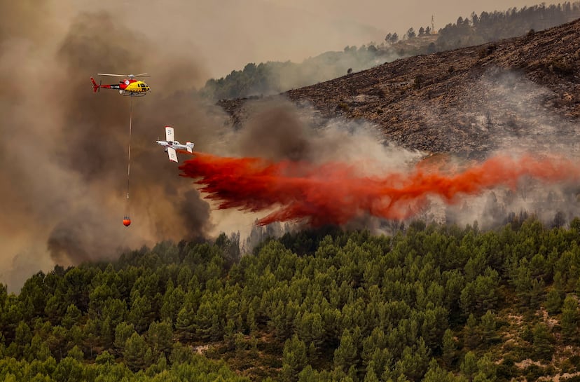 La suma de la superficie arrasada entre los dos incendios asciende a más de 20.000 hectáreas y, según el ministro del Interior, Fernando Grande-Marlaska, que se ha desplazado hasta Castellón, hay un millar de efectivos trabajando contra las llamas y lo que estas implican. La Agencia Estatal de Meteorología (Aemet) ha decretado para este miércoles riesgo por tormentas en 15 provincias, entre las que se encuentran Alicante, Castellón y Valencia.