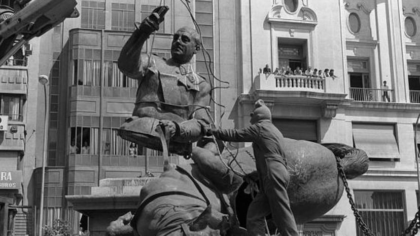 11 angustiosas horas que costó bajar la estatua de Franco de su pedestal en Valencia