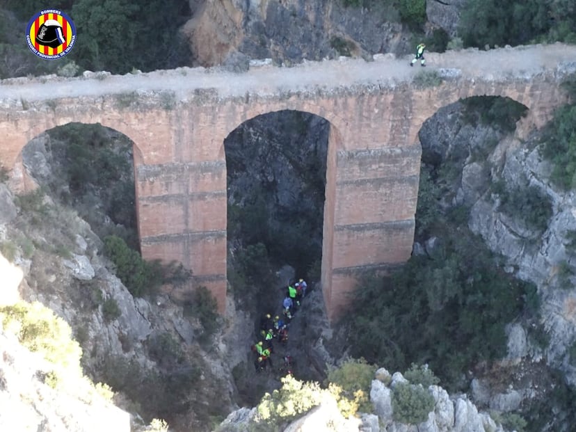 Espectacular rescate de un senderista en un acueducto romano en Valencia