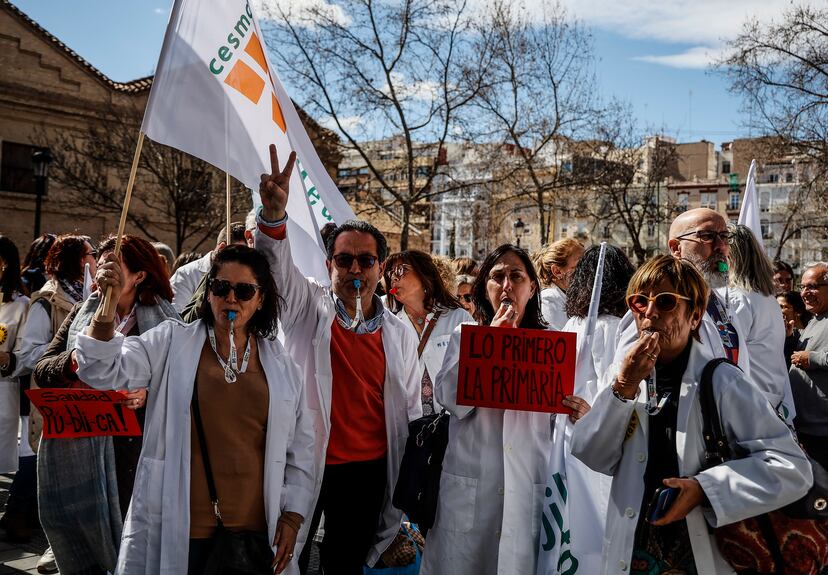 Alrededor de un centenar de facultativos se ha concentrado a las puertas de la consejería de Sanidad para para exigir, en la primera de las tres jornadas de huelga (los siguientes serán el 3 de abril y el 8 de mayo, justo unos días antes de iniciar la campaña electoral). Durante la protesta, el secretario general del sindicato, Víctor Pedrera, ha señalado a los periodistas que el seguimiento de la huelga “ha sido desigual, como era de esperar” pero ha sido más fuerte en Atención Primaria, donde ha sido secundada por “más del 70%” de los compañeros.