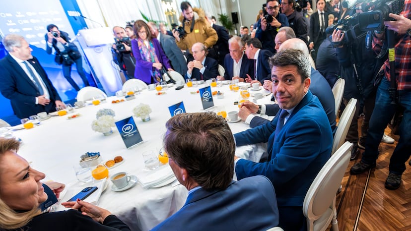 Ante esa ausencia de calor, abrazos y palmadas en la espalda, Carlos Mazón decidió ir al hotel Ritz de Madrid y así lo hizo este lunes, en un inmueble, un acto y una sala alejados del vulgo. No solo acudió a recibir el reconocimiento de quienes no le conocen, sino que cambió la cámara legislativa valenciana, que representa el voto de la ciudadanía, por un espacio con lámparas de araña de cristal y con participantes tomando café para aportar una información que se negó a dar en el Parlamento. En cualquier caso, el dirigente regional del PP no encontró el cobijo que esperaba. Las ausencias más clamorosas fueron las de su jefe de filas, Alberto Núñez Feijóo, y la de la presidenta de la Comunidad de Madrid, Isabel Díaz Ayuso. Pero hubo más. Los representantes de la patronal suelen acompañar a los presidentes autonómicos en estas puestas de largo en la capital. En este caso, Mazón estuvo solo. Tras la crítica del presidente de la Confederación Empresarial de la Comunidad Valenciana, CEV, Salvador Navarro, a la gestión de la dana, un empresario amigo del propio Mazón, que además es presidente de la Cámara de Comercio y vicepresidente de Feria Alicante, decidió dar de baja de la organización, representante valenciana en la CEOE, tanto a su compañía como a la feria alicantina, con el visto bueno de la consejera del ramo. La situación política llevada al seno de una patronal que cedió a Feijóo su sede para presentar el “plan Valencia” que ejecutará si llega a la presidencia del Gobierno.