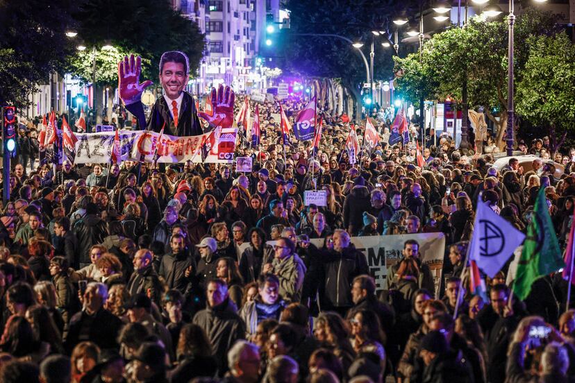 La protesta cierra una semana en la que al presidente valenciano se le multiplican los frentes políticos y también la presión social en la calle. Hace solo unos días se conocieron más datos sobre lo que sucedió el día de la dana. El día en que la riada causó centenares de muertos, Mazón asegura que entró a las 20.28 al Cecopi (Centro de Coordinación Operativo Integrado) tres horas y media después de su inicio, minutos más tarde de que se lanzara la alerta a los ciudadanos, y cuando, según las investigación que lleva a cabo una jueza de Catarroja, se habían producido ya un gran número de muertes. Pero Mazón se ha enrocado y no se plantea dimitir e insiste en que deberían de hacerlo los que “no avisaron” de la “crecida mortal” del barranco del Poyo (en alusión a los organismos del Gobierno de España), que provocó la mayor parte de los muertos de la riada.