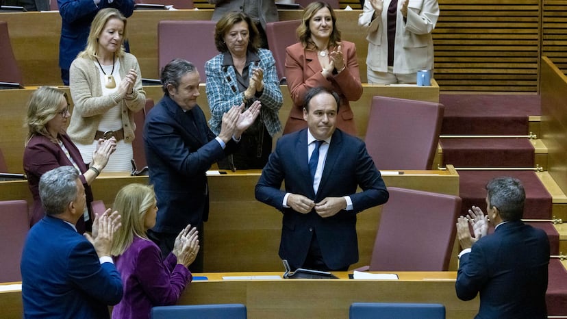 Cuando la presidenta del parlamento, Llanos Massó, de Vox, ha anunciado el resultado de la votación a las 18.10, tanto los diputados de la bancada popular como los de la formación de extrema derecha han prorrumpido en aplausos y se han acercado al secretario general del PPCV, de 49 años, aún alcalde de municipio alicantino de Finestrat (Alicante), para felicitarle.