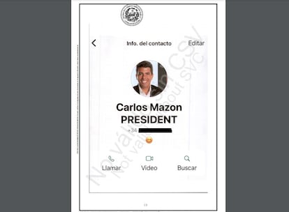 El acta notarial también recoge una llamada perdida a través de la popular aplicación de mensajería entre ambos a las 20.19 y una segunda a esa misma hora de 37 segundos de duración. En ese momento, Mazón está llegando conn una comitiva de asesores y escoltas al centro en L’Eliana (Valencia) donde se celebró el Cecopi, el órgano que coordinó la crisis. El president desembarcó en este complejo a las 20.28 horas, 17 minutos después del envío de la alerta masiva a móviles. Una notificación que se coló en los teléfonos a las 20.11 horas, cuando, al menos, 155 personas ya habían fallecido. Y que, según la magistrada de Catarroja, si se hubiera enviado antes, se habrían salvado vidas.