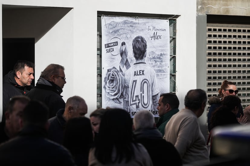 La llegada del principal implicado ha sido especialmente tensa. Justo enfrente vive un tío de Álex, que ha colocado en su fachada un gran cartel con una imagen del chico de espaldas, vestido con una camiseta del equipo de fútbol, con el número 40, su nombre y unas palabras: “Todos somos Álex”. El retrato ha sido elaborado por el club de fútbol Promeses, al que pertenecía el menor.
