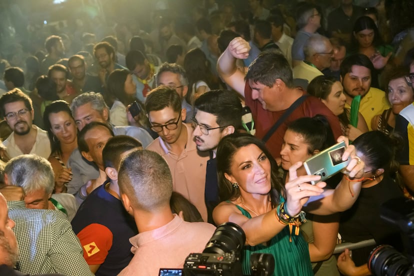 Santiago Abascal ha esperado a que el recuento estuviera prácticamente concluido y la mayoría absoluta del PP consolidada para arengar a unos 200 seguidores congregados junto al hotel de Sevilla donde la dirección de Vox ha instalado su cuartel general. Aunque los resultados no invitaban a la euforia y la mayoría ha seguido con desgana el recuento de votos que se iba desgranando en una gran pantalla, el ánimo se ha levantado cuando ha comparecido la candidata, Macarena Olona, flanqueada por los demás dirigentes del partido y por el propio Abascal, que se ha prodigado en gestos de cariño hacia ella. Tanto Olona como Abascal han reconocido que no era este el resultado que esperaban.