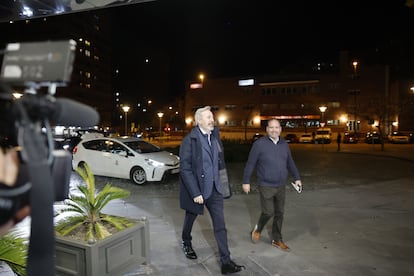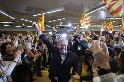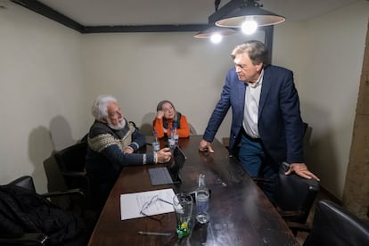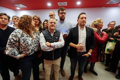 Rodrigo Jiménez (EFE)El portavoz del PSOE Aragón, Jesús Morales, y otros miembros de partido este domingo tras el cierre de los colegios electorales en Aragón con motivo de las elecciones en la comunidad.