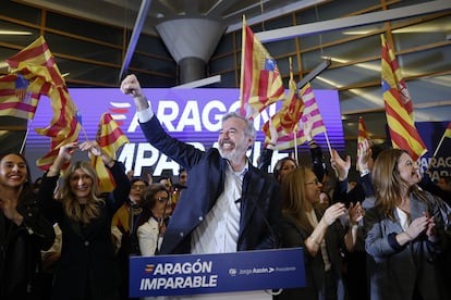 Azcón comparece para valorar los resultados en las elecciones de Aragón, este domingo en Zaragoza.Samuel SanchezAzcón celebra la victoria en las elecciones aragonesas, este domingo en Zaragoza.Samuel SanchezComparecencia de Pilar Alegría para valorar los resultados de las elecciones de Aragón, este domingo en Zaragoza.Javier HernándezAzcón comparece para valorar los resultados en las elecciones de Aragón, este domingo en Zaragoza.Samuel SanchezEl candidato de CHA a la presidencia de Aragón, Jorge Pueyo (derecha), durante la rueda de prensa en la sede del partido, en la noche electoral de las elecciones autonómicas de Aragón.