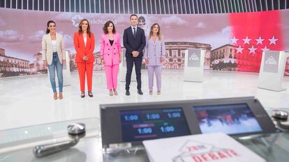 El único debate de las próximas elecciones autonómicas en el que participa la presidenta de la Comunidad de Madrid empezó este martes con una de esas frases cortas y terminó este miércoles, pasadas las 12 de la noche, con otra. Dijo Isabel Díaz Ayuso en su minuto inicial: “El 28 de mayo hay que decidir entre una comunidad ambiciosa gestionada por el PP o los que proponen subir impuestos, votar a ETA o dar las casas a okupas”. Y dijo en su minuto final: “Yo no llamo a la contra a las urnas. Llamo a favor”. Podía incluso acortarse más: o PP o ETA, que es el mensaje general que los populares repiten para pedir el voto en las elecciones autonómicas o municipales allá donde van.