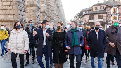 “¡PP o PP, no hay más cáscaras!”, porfió Mañueco, que compaginó las llamadas a aglutinar el voto con las arremetidas contra Pedro Sánchez. “Tenemos que concentrar el voto en el único Gobierno posible frente a Sánchez, cuyo Gobierno es débil, fracturado, y no es capaz de mantener a los socios parlamentarios como se demostró con la votación de la reforma laboral”, insistió el candidato del PP en Segovia.