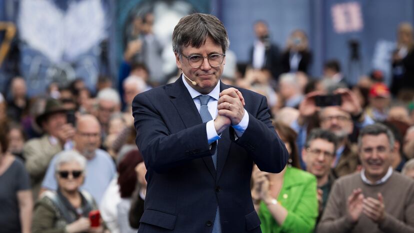 Puigdemont no contempla el escenario de la derrota electoral —“preparo el discurso de la victoria”, ha dicho—, pero ahora desvincula su vuelta de cualquier resultado. Uno de sus lemas de campaña pasa por presentar un posible triunfo de Junts como la “restitución” de lo que se quebró en Cataluña en 2017 con la aplicación del artículo 155 de la Constitución, que intervino la autonomía tras la declaración unilateral de independencia. Dice tener una voluntad clara: “Culminar lo que empezamos en 2017. Es la responsabilidad que quiero asumir”. Se refiere al referéndum ilegal de independencia que convocó cuando comandaba la Generalitat. Él se marchó a Bélgica para evitar ser juzgado, pero varios miembros de su Gobierno fueron procesados y condenados (y posteriormente indultados por el Gobierno de Pedro Sánchez). La ley de amnistía, exigencia de Junts y ERC a cambio de su apoyo a la investidura de Sánchez, dará previsiblemente carpetazo a todas las causas derivadas del procés.