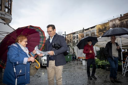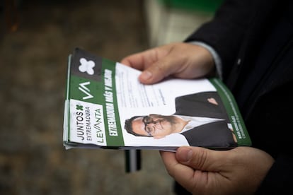 Durante su estancia en Plasencia, y antes de subirse al coche y dirigirse hacia la Siberia extremeña, una comarca al noreste de la capital pacense, entrega folletos a diestro y siniestro. Reconoce sin tapujos que ha votado a Juan Carlos Rodríguez Ibarra, a Ciudadanos y a Extremadura Unida. “Los separatistas buscan traducciones en Netflix y nosotros que no haya pobreza”, cuenta. Aunque nadie sepa quién es, la sensación de su paseo es positiva. “Las encuestas dicen una cosa y el sentir es otro”, dice. Suena su teléfono. Es un número raro. Se lo entrega de inmediato a su fiel escudero. Minutos después, pregunta, no vaya a ser que se pierda un votante dudoso.