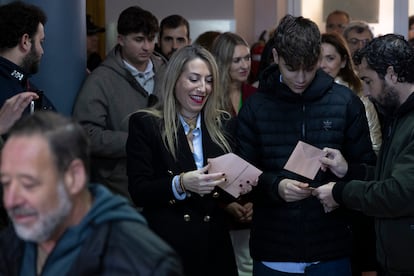 María Guardiola, candidata del Partido Popular a la presidencia de Extremadura, ejerce su derecho al voto en el CEIP El Vivero de Cáceres.