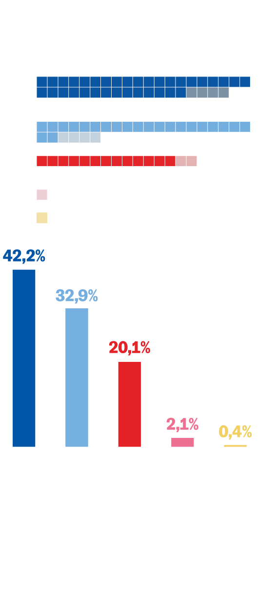 El BNG es el partido que se hace con el segundo puesto en intención de voto, con 32,9%, y el PSOE se sitúa en tercer lugar, con un 20,1%. El trabajo otorga un 2,1% de la intención de voto a Sumar Galicia; un 0,9% a Vox; y un 0,4% para Democracia Ourensana (DO). Tanto Sumar Galicia como DO, el partido del polémico alcalde de Ourense, Gonzalo Pérez Jácome, podrían lograr un representante, algo que la encuesta no atribuye a la formación de Santiago Abascal. Para entrar en el reparto de escaños de una provincia es necesario como mínimo un 5% de los votos.