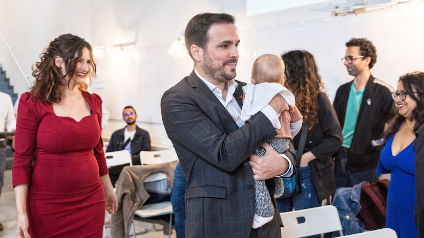 Dos días después de comunicar públicamente su decisión de no repetir en las listas electorales el próximo 23-J y en plenas negociaciones de Izquierda Unida con Sumar, el líder del partido, Alberto Garzón, ha reunido este domingo a la Coordinadora Federal de la formación para comunicarle su renuncia. Con una puesta en escena muy cuidada, acompañado de su esposa, Anna Ruiz, y de su hijo más pequeño, Robin, el ministro de Consumo ha llegado a una sala del céntrico barrio de Lavapiés (Madrid) para comenzar la reunión del máximo órgano de dirección de IU. En medio de unas conversaciones muy delicadas, con hasta una quincena de formaciones, el ministro ha llamado a las izquierdas a “trabajar juntas” dentro de Sumar, el proyecto que encabeza la vicepresidenta segunda del Gobierno y que este lunes entra en una semana crucial para su futuro.