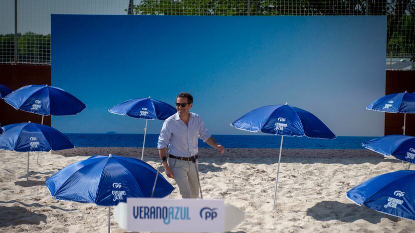 En la presentación en un campo de vóley-playa de las instalaciones del club Puerta de Hierro de Madrid, ante una gran imagen del mar de Nerja, acompañada por sombrillas azules con el logo del PP y la nostalgia de Verano azul ―en alusión a la serie de televisión de los años ochenta y al color de la formación política―, el portavoz popular repitió varias veces que su partido “no va a gobernar a cualquier precio”. Sémper ni siquiera anticipó el lema de la campaña. El objetivo del acto era enviar un mensaje “ilusionante, positivo y con una sonrisa amable” del “cambio tranquilo y estable” que preconiza Feijóo tras el 23-J.