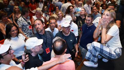 Sumar busca abrirse paso en una campaña, de partida, compleja. La coalición que encabeza Yolanda Díaz, la opción más joven de las principales en disputa en las generales del próximo 23 de julio, se afana estas semanas en explicar su proyecto, hablar de propuestas y robar protagonismo a los dos grandes, PP y PSOE. En su primera parada en Andalucía, este domingo ante más de mil personas en un auditorio de la Cartuja de Sevilla, la vicepresidenta segunda del Gobierno ha aprovechado el que será el tema central de mañana lunes, el debate entre Pedro Sánchez y Alberto Núñez Feijóo, para cargar contra un ”bipartidismo” que Sumar considera ya caducado. “La política es demasiado seria para convertirla en un cara a cara de zascas de dos señores que miran al pasado”, ha criticado Díaz, que no tendrá oportunidad de discutir con el presidente de los populares en toda la campaña porque Feijóo ha rechazado los formatos a cuatro bandas en los que habría coincidido con Vox, su potencial aliado. En Sevilla, una provincia que ha sido feudo tradicional de los socialistas durante casi cuatro décadas, la líder de la coalición de izquierdas ha llamado también al voto de los electores “decepcionados” con el PSOE.