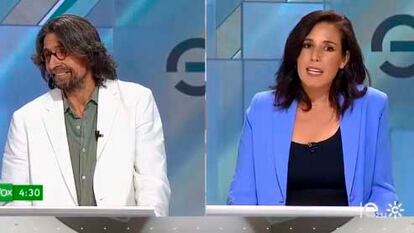 Desde el comienzo del debate, el aspirante de Sumar tomó la decisión de volver la cara y dar la espalda a De Meer, situada a su izquierda en el plató, cada vez que esta intervenía. Era una imagen chocante por dos motivos: por la descortesía hacia su adversaria y porque en el plano de televisión, Sierra aparecía mirando hacia afuera. Una catástrofe, televisivamente hablando. El catedrático sevillano lo hizo todas las veces que la candidata de Vox intervino, pero esta no se dio cuenta o, al menos, no se lo reprochó, hasta la segunda parte del debate organizado por Canal Sur en el que participaron además el ministro de Agricultura y cabeza de lista del PSOE por Córdoba, Luis Planas, y el responsable económico del PP, exconsejero andaluz de Hacienda y candidato por Sevilla. Juan Bravo.