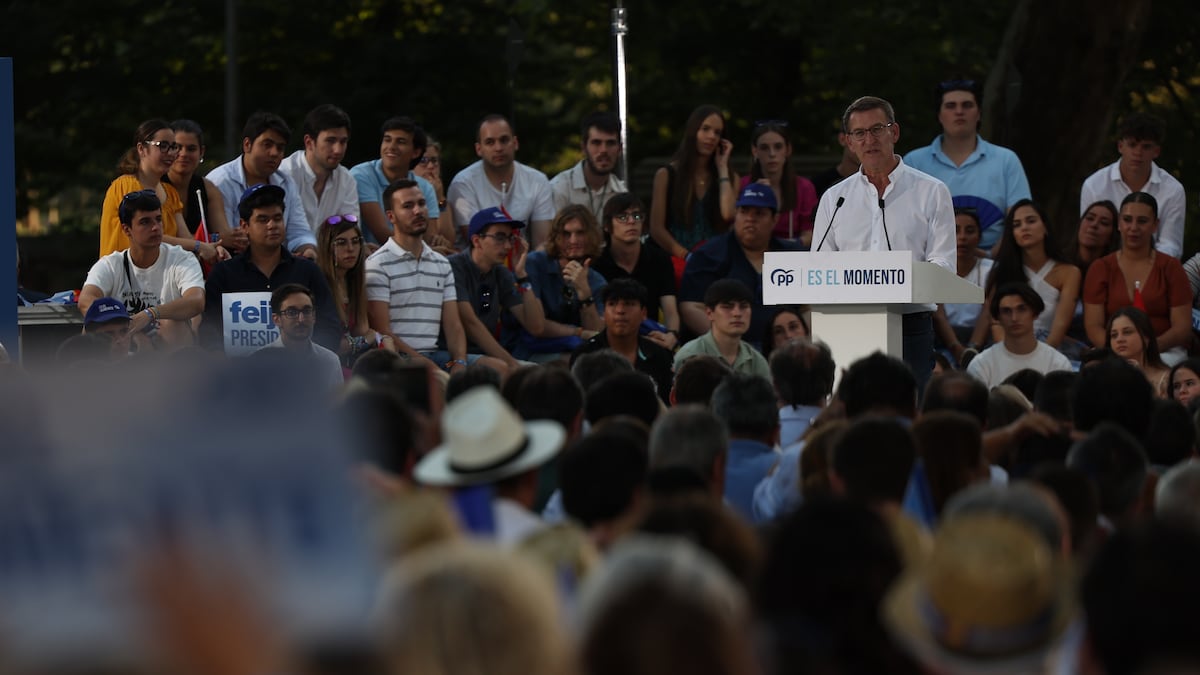 Isabel Díaz Ayuso ya había echado leña al fuego durante su intervención antes de dar paso a Feijóo, y en la que ha alentado las sospechas sobre la fecha de las elecciones generales del domingo. “Casi 8000 interventores vais a desafiar al cambio climático [en Madrid]. Estamos en un momento agotador, pero tenemos un presidente que no respeta el descanso de los españoles... el calor”, ha dicho Ayuso, que también ha acusado a Sánchez de “utilizar” las instituciones para “perpetuarse” en el poder. En Valencia, Feijóo se ha comprometido, por la mañana, a aprobar una ley si gobierna para prohibir que las elecciones generales puedan celebrarse en julio y agosto, salvo casos excepcionales. Como presidente de Galicia, aunque la pandemia estaba todavía presente, Feijóo convocó a las urnas un 12 de julio. El PP agita así el cóctel de las suspicacias ante el resultado que pueda salir de las urnas.