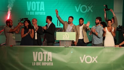 Por la mañana, cuando acudió a votar, Abascal ya se había puesto la venda antes de la herida al asegurar que “cualquier resultado que obtenga Vox en estas circunstancias va a ser un resultado heroico”. A pesar de que Vox ha participado en los mismos debates televisivos que los demás partidos, salvo el PP y el PSOE, cuyos candidatos Pedro Sánchez y Alberto Núñez Feijóo, tuvieron un cara a cara en Antena 3; y de que Abascal ha rechazado entrevistas con numerosos medios de comunicación (incluidos los del Grupo PRISA, editor de EL PAÍS), aseguró que su partido ha tenido “todo en contra, una oposición de la mayoría de los medios de comunicación y de los adversarios políticos instalados en la mentira, la demonización y el retorcimiento del mensaje de Vox”.