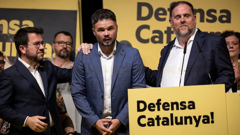 El discurso de Esquerra, en la línea del de la campaña, fue mucho más pactista e instó a Junts a negociar el precio del apoyo. Gabriel Rufián insistió anoche, también desde la capital catalana, en las tres condiciones para un Gobierno que soslaye la mayoría relativa de PP y Vox: acabar con el déficit fiscal que sostiene sufre Cataluña, el traspaso de Rodalies y que “Sánchez no se levante de la mesa”. Ese último punto, calculadamente vaporoso, evita poner sobre la mesa un ultimátum del referéndum para darle alas a la negociación.
