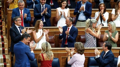 Fueron días de teléfonos incansables, de nervios e intranquilidad en medio de la modorra de agosto, hasta que finalmente la mayoría progresista logró este jueves estrenar la nueva legislatura con un rotundo triunfo. Los dos socios del Gobierno en funciones tuvieron que sudar hasta el último minuto para conseguir el apoyo del independentismo catalán, singularmente el de Junts, la formación del huido Carles Puigdemont, y lo lograron de pleno. La izquierda obtuvo el control de la Mesa del Congreso con una mayoría sobrada -178 votos- que colocó al frente de la Cámara a la socialista Francina Armengol, de 52 años. Para completar la jornada, Pedro Sánchez y los suyos se encontraron con un regalo inesperado: el bloque de la derecha se dividió y el PP se quedó en 139 votos, un escuálido resultado para las pretensiones de su líder, Alberto Núñez Feijóo, de pedir al Rey que le permita someterse a la investidura.