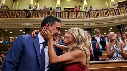 En una sesión parlamentaria sin intervenciones de los líderes, algo muy inusual, el lenguaje gestual cobra una importancia especial. Y la euforia del jueves durante la sesión constitutiva de las Cortes mostrada por el Gobierno, con Pedro Sánchez y Yolanda Díaz aplaudiéndose, sonriendo, abrazándose, y la satisfacción de los principales negociadores del PSOE —Félix Bolaños, Santos Cerdán, María Jesús Montero— contrastaba mucho con un PP que se quedó mucho más solo de lo esperado.