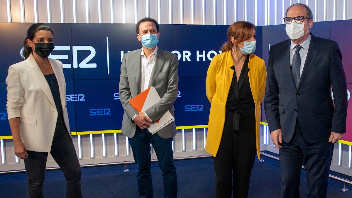 El debate electoral en la Cadena SER ha saltado por los aires nada más comenzar, con el abandono del candidato de Unidas Podemos, Pablo Iglesias, después de que la cabeza de cartel de Vox, Rocío Monasterio, se negara a retractarse por haber puesto en duda la amenaza de muerte que ha recibido Iglesias en una carta con cuatro balas. “Yo condeno todo lo que sea la violencia, me gustaría que ellos hubieran condenado lo que sufrimos en Vallecas. Yo, bueno, de Pablo Iglesias me creo poco, creo que todos los españoles, cada vez que oímos algo que dice Pablo Iglesias lo ponemos en duda porque nos han engañado durante este año vilmente”, había declarado a primera hora Monasterio en RNE. En su primer turno de palabra, el candidato de Unidas Podemos ha avisado de que se iría si la candidata de Vox no rectificaba sus declaraciones. Monasterio no se ha retractado, aunque sí ha dicho que condenaba todo tipo de violencia, y ha terminado con una frase desafiante a Iglesias: “Si usted es tan valiente, levántese y lárguese”. En medio de una agitada bronca, el exvicepresidente del Gobierno se ha levantado y se ha marchado. Aunque el resto de participantes han tratado de continuar el debate sobre la gestión sanitaria, las constantes provocaciones de la cabeza de lista de Vox han terminado por hacerlo naufragar.