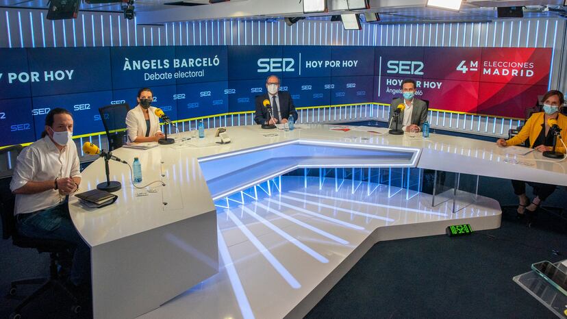 La noticia era que Isabel Díaz Ayuso no se presentaba al segundo debate de la campaña, esta mañana de viernes en la Cadena SER. Sin el PP, la extrema derecha ha agarrado el micrófono y ha dinamitado la convivencia democrática. No ha habido tiempo ni para saludarse. Todo ha volado por los aires a los dos minutos. Rocío Monasterio ha puesto en duda que Pablo Iglesias recibiera cuatro balas y una amenaza de muerte. Cuatro balas. Y una amenaza de muerte. “No es aceptable”, ha dicho el candidato de Unidas Podemos, “que mi padre, mi madre y mi pareja hayan sido amenazados de muerte con cuatro balas y la candidata de ultraderecha lo ponga en duda. Si [Monasterio] no se retracta, nosotros vamos a abandonar el debate”.