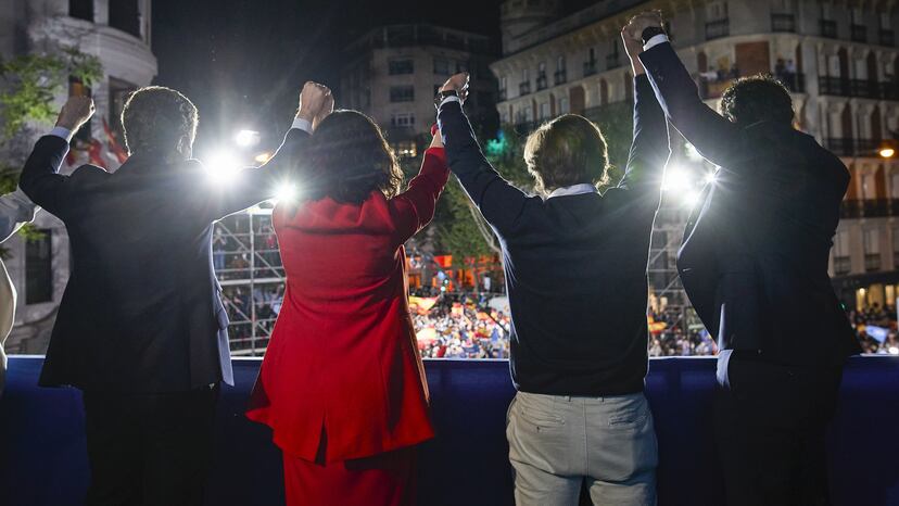 Algo cambia ese día. El nombre Iglesias empieza a pronunciarse en los mítines de Díaz Ayuso —“¡yo sonrío cuando quiero porque no soy de Podemos!”, dice—, que augura, como luego ocurre, que el fundador de Podemos no recogerá su acta tras las elecciones. Esa decisión resume el triunfo aplastante del PP, que es la derrota del líder de Podemos. Y la celebración de las dos cosas acaba siendo por todo lo alto.