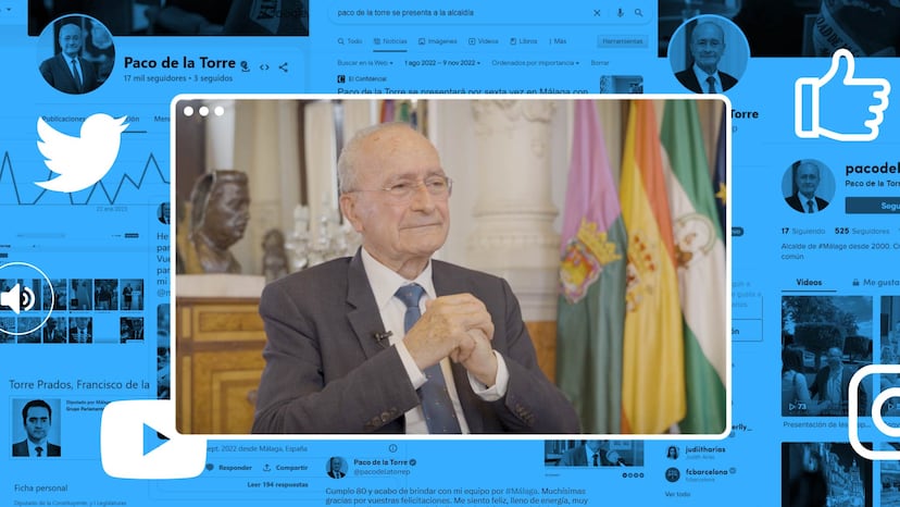 El anuncio por sexta vez de Francisco de la Torre como candidato del Partido Popular a la alcaldía de Málaga generó tanta expectación en redes sociales como la edad con la que se volvía a presentar a las elecciones, a punto de cumplir los 80 años. Lo hizo mediante un vídeo que subió a todas sus cuentas sociales. De la Torre, consciente de la importancia que cobra hoy en día la comunicación y la interacción política en la red, está presente en todas las plataformas, en Facebook, Twitter e Instagram, incluida la última red de moda, Tik Tok. EL PAÍS inicia con el veterano dirigente del PP, una serie de entrevistas a los candidatos a las elecciones autonómicas y municipales del 28 de mayo con el objetivo de “desnudar digitalmente” a nuestros políticos, siguiendo el rastro que dejan en sus redes sociales.