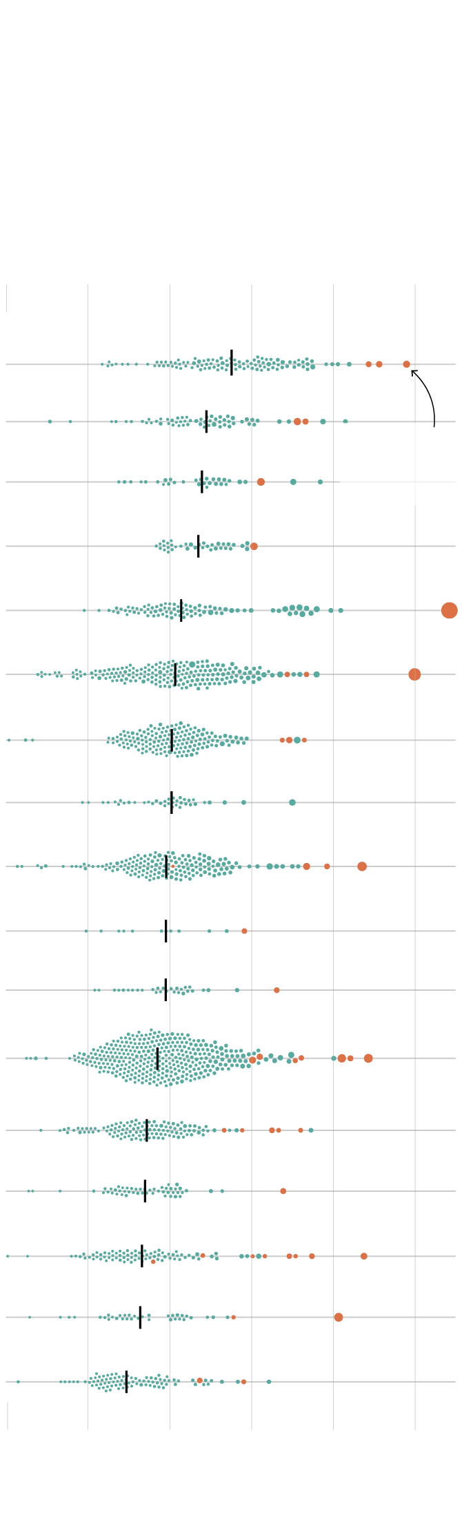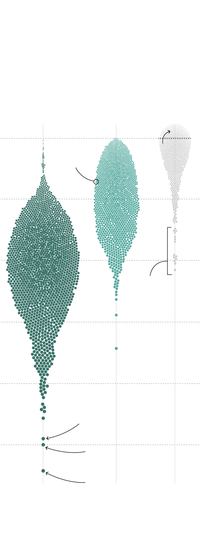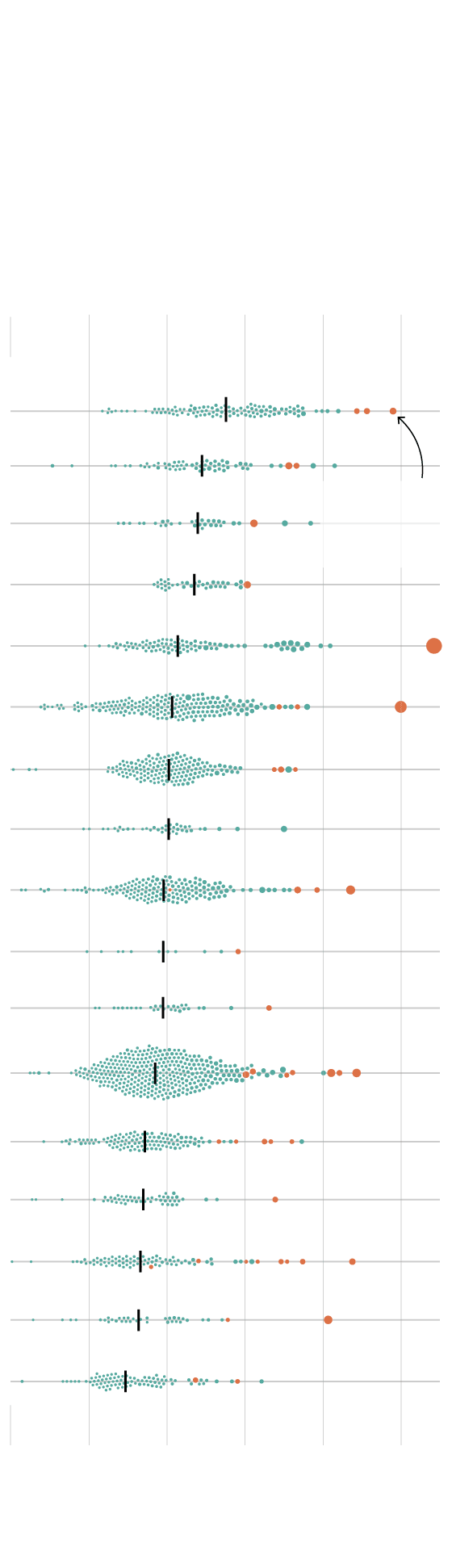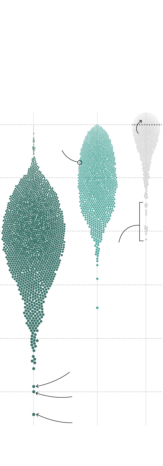 El tamaño de los círculos es proporcional al total de dinero percibido