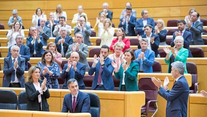 El líder del PP, Alberto Núñez Feijóo, ha acusado a Pedro Sánchez en el Senado de ser "sumiso ante sus socios". "Les ha faltado darle las gracias a los asesinos por su generosísima postura", ha ironizado. "No entiende nada; 144 años de historia del PSOE para acabar a disposición de Bildu. Bildu le ha demostrado que le puede reventar la campaña electoral, por eso ha sido usted más cruel con el PP que con Bildu".