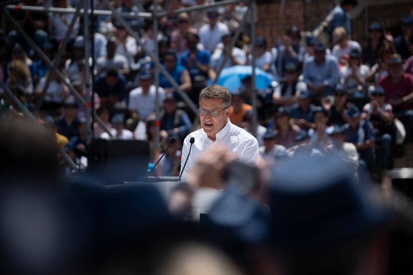 Los socialistas insisten en que llenar la plaza es solo cuestión de dinero, y ellos decidieron no gastarlo así: se ponen autobuses desde todas las comarcas y se llena. Pero además ellos no querían ir a ese lugar tan vinculado a Gürtel. “El asesino siempre vuelve al lugar del crimen”, bromea un dirigente socialista. De hecho, Puig insiste en que los valencianos tienen que elegir entre “Gürtel o Volkswagen”, por la inversión de 4.500 millones de euros que ha prometido la firma alemana en la gigafactoría de baterías en Sagunto, un símbolo de la gestión del Govern del Botánic. Pero para el PP la plaza es el mensaje, y Feijóo estaba muy crecido, convencido de que el próximo domingo dará el primer golpe para llegar al Gobierno: “Están nerviosos en La Moncloa. Porque nos ha salido bien. Este el acto que todos los partidos querrían. Esto huele a cambio. La suerte sonríe a los valientes”. En el PP creen que el asunto de las listas de Bildu les ha dado el empujón que necesitaban en la campaña, aunque aún nada está hecho. “Vamos bien, pero ahora tenemos que intentar que no pase nada en estos días que lo estropee todo”, señala una dirigente del PP valenciano.
