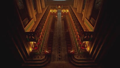 Si vieran esta última reconstrucción digital del coro mateano completo, contemporaneo a la emergencia de la polifonía en París, “Leonino y Perotino llorarían”, bromea Prado-Vilar, investigador distinguido de la Universidade de Santiago (USC) y del Cispac (Centro de Investigación Interuniversitario das Paisaxes Atlánticas Culturais). El proyecto KosmoTech 1200, respaldado por el Ministerio de Ciencia e Innovación y fondos europeos Next Generation, se sirvió de la fotogrametría y la investigación histórico-artística en fuentes de la época para montar el coro y lograr, por fin desde la primera propuesta —el dibujo de Pita Andrade, en 1953— que “todo encaje”.