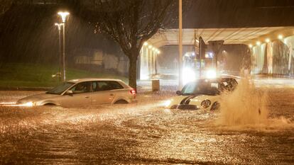 Los equipos de emergencias de Brión, en el área compostelana, tuvieron que actuar en una veintena de casas inundadas y dos de los ríos del municipio se han desbordado. En la capital gallega, el colegio Divino Maestro fue desalojado. Ya a primera hora de la mañana se anegó la parte baja del centro escolar y los niños regresaron a sus casas. Los bomberos rescataron a varios conductores en la vía Edison cuando aún no eran ni las ocho. Estaban subidos al techo de sus coches y el nivel del agua era “considerable” y no dejaba de subir, informa el 112. En el puente de Laraniño de Santiago, el personal de emergencias auxilió con la ayuda de la Guardia Civil de Tráfico a una mujer que quedó atrapada en su automóvil por el agua. En Lousame, a 40 kilómetros de Santiago, el desbordamiento de un cauce arrastró otro vehículo con la conductora dentro que también fue rescatada. En Vigo, los bomberos asistieron a un hombre que no podía salir de un portal inundado en la calle Areal porque era incapaz de vencer la fuerza de la corriente.