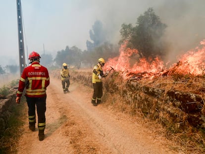 El fuego avanza sin control este sábado por Vilardevós, un ayuntamiento de la esquina sureste de la provincia de Ourense fronterizo con Portugal. El incendio comenzó con varios focos el viernes pasadas las 11 de la noche en la parroquia de Terroso y a las 20.30 del sábado ya había quemado 500 hectáreas de la Serra das Penas Ceibes. La Xunta ha decretado el nivel 2 de emergencia por su proximidad a viviendas, mientras siete helicópteros, siete aviones, 23 brigadas contraincendios, 25 motobombas y cinco palas luchan contra las llamas.