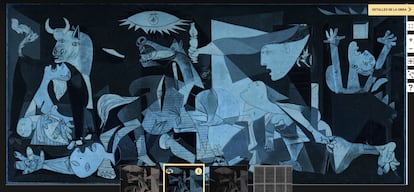 “En estos años de experimentación, nos hemos dado cuenta de que formatos aparentemente sencillos, como el audio, el vídeo o las newsletters son los que mejor funcionan para transmitir contenidos. Ha habido entre las instituciones culturales una fiebre por crear apps, que consumen muchos recursos y exigen permanente actualización, cuando la clave está en adaptar nuestras webs a los dispositivos móviles”, opina la responsable del discurso digital del museo. Más de la mitad de sus espectadores virtuales acceden a sus contenidos a través de los teléfonos móviles inteligentes. Pero, han sido algunas herramientas más elaboradas las que han logrado uno de los los mayores hitos de la web del Reina Sofía. Repensar Guernica es una investigación de más de dos años que recopila 2.000 documentos en torno a la obra maestra de Picasso. Pero, además, gracias a la tecnología de fotografía gigapixel, nos permite analizar hasta el detalles del cuadro que no podríamos percibir a la distancia de seguridad que nos impone una visita presencial al museo. Esta técnica sincroniza varias microcámaras que registran imágenes con una resolución varias veces superior a la del ojo humano. Entre los planes de futuro del área de programas virtuales se encuentra la ampliación de este proyecto, con nuevos datos y espacios interactivos.