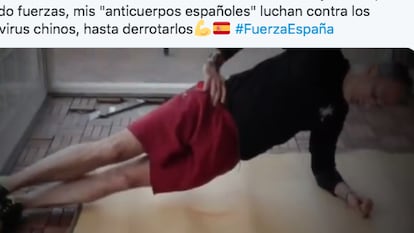 Ortega Smith ha compartido un vídeo de escenas caseras y haciendo ejercicio, con la banda sonora de la canción ‘Hermanos de Sangre’ de Loquillo. Y, ha escrito que sus “'anticuerpos españoles’ luchan contra los malditos virus chinos, hasta derrotarlos". En el mensaje de la embajada, que acompañan con la etiqueta #StopRacismo, se recuerda al político del partido de extrema derecha que la Organización Mundial de la Salud ha denominado oficialmente al virus como COVID19, “abogando por evitar referirse a cualquier ubicación geográfica, cultura, población...”. Este tuit concluye deseando una pronta recuperación a Ortega Smith.
