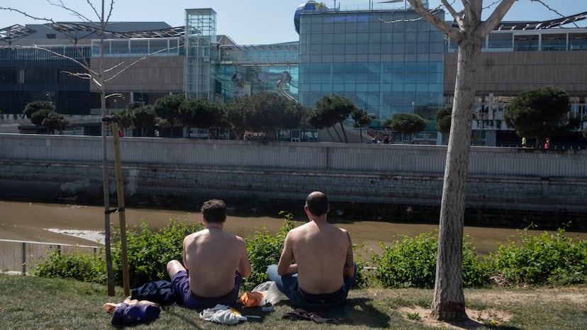 Madrid es más que su centro, aunque a veces se olvide. La avenida de la Albufera, a mediodía, estaba a reventar. Y el parque de Madrid Río con menos afluencia que hace siete días, pero con ciudadanos haciendo una vida normal. Los cuarentones Roberto y Daniel han llegado al parque, han buscado una zona con césped, se han quitado la camiseta y han abierto una lata de mejillones y patatas fritas.