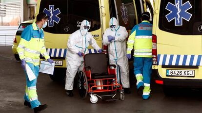 En Madrid, solo los datos de profesionales contagiados y en aislamiento que la Consejería de Sanidad cifró hace dos días en 2.600, parecen bastante lejanos de esa panorámica real. Este viernes, una recopilación de Comisiones Obreras del Summa y de 19 centros hospitalarios de Madrid [la Comunidad tiene 102 hospitales entre públicos y privados, 266 centros de salud, 163 consultorios locales, un centro adscrito y 40 Servicios de Atención Rural], suma 4.196 profesionales de baja. De llos, 97 en el hospital de El Escorial, 525 en el Doce de Octubre, 600 en el Gregorio Marañón, 61 en Parla, 224 en el Infanta Leonor (que también recoge datos del Virgen de la Torre), 606 en La Paz, 302 del Summa, 64 en la Fundación Jiménez Díaz, 288 en el Ramón y Cajal, 90 en el Niño Jesús, 454 en el Clínico, 100 en Cruz Roja, 84 en el Doctor Rodríguez Lafora, 72 en el José Germain, 29 en el Tajo, 69 en Arganda, 95 en Fuenfría, 376 en Puerta de Hierro y 60 en Povedad.
