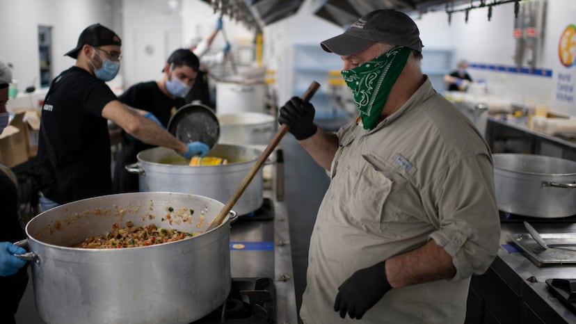 R. Me dijeron que 5.000 pequeñas cocinas sociales llevadas por diferentes grupos habían cerrado por falta de fondos, de voluntarios o porque les obligaron. Muchos compañeros míos desde sus restaurantes empezaron a cubrir las necesidades de lo que iban pudiendo. Daban cien comidas aquí, doscientas allá y veían que no era suficiente. Cuando hay un incendio en un barrio sabes que siempre va a haber un restaurante que abra sus puertas para dar de comer a los bomberos, a la gente que ha perdido la casa y a los que han ido a ayudar. Para eso no necesitas a WCK. Pero cuando las cosas se convierten en algo más grande, nos movemos como pez en el agua. No hacemos nada muy especial: somos una ONG fundada por cocineros, apoyada por cocineros, siempre hay cocinas en cualquier parte del mundo, sabemos donde hay comida y fuego, voluntarios y gente que nos ayude a distribuir. Cuando eso entra en un plan que trazas sobre la marcha es algo mágico. Nosotros solo decimos: dejarnos a nosotros que sabemos lo que hacemos. No tiene sentido que haya otro tipo de personas hablando de dar de comer cuando tienes a los mejores dispuestos a hacerlo.
