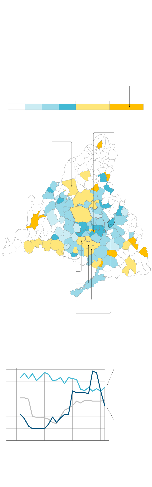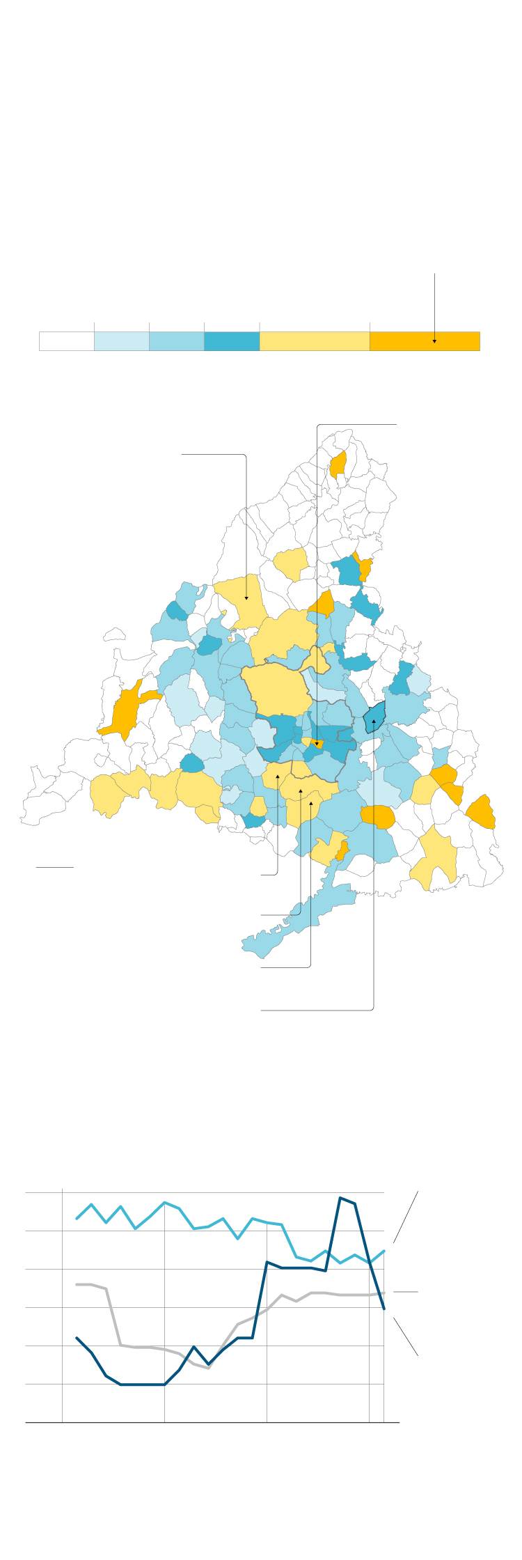 ¿Refleja este municipio que hay repuntes en Madrid? ¿Qué ocurre en Leganés, donde ha habido 85 casos confirmados en los últimos 14 días; Getafe, con 82; Móstoles, con 41; o Torrejón, con esos 39? ¿Y en los distritos de Fuencarral-El Pardo, Moratalaz, La Latina, Retiro o Villaverde, con registros de 82, 63, 53, 51 o 50 en ese mismo periodo? ¿Hubo bodas con contagios, fiestas sin medidas de distanciamiento físico, o nuevos problemas en hospitales o residencias de esas zonas? ¿Son rebrotes?