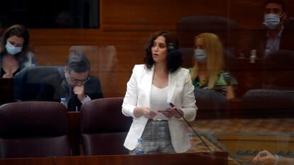 “Si hay posibilidad de reducir una consejería, lo haré”, ha dicho la presidenta de la Comunidad durante el pleno de este jueves