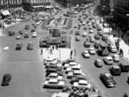En la Puerta del Sol se producían en tiempos sin covid unos 6.800 desplazamientos diarios de vehículos. De ellos, 1.100 son coches particulares y 4.000 taxis, de los que el 70% circulan vacíos, según datos municipales. La última vez que se le dio un lavado de cara fue en 2009, cuando prácticamente se eliminó el tráfico de paso, dejando solo un carril.