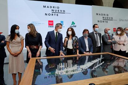 El 11-M iba a ser un jueves histórico en Madrid. Y fue el peor día de la historia reciente de la capital. El 11 de marzo de 2004 estaba previsto que se aprobara el proyecto Madrid Nuevo Norte en el Ayuntamiento. Diez explosiones casi simultáneas en cuatro trenes se llevó la vida de 192 ciudadanos horas antes de la firma de aquel acuerdo. El atentado yihadista de 2004 aplazó la junta de Gobierno municipal para una semana después. Pero la victoria socialista de Zapatero en las elecciones generales frenó por completo aquella gigantesca operación urbanística que se puso en marcha en octubre de 1993 con el Gobierno de Felipe González. 17 años después, ya sí, la Operación Chamartín—conocida ahora como Madrid Nuevo Norte― se podrá visitar, al fin, en una maqueta. Otra más. Ya que hace un año, en el portal del Paseo de la Castellana número 120, también había otra expuesta. De hecho, la visitaron más de 26.000 madrileños. Aun así, el Gobierno de la Comunidad, el Ayuntamiento de la capital y el Ministerio de Fomento convocaron a los medios este martes en la Puerta del Sol para anunciar que las obras empezarán el año que viene. Y, de paso, exponer la maqueta final en el kilómetro cero de la ciudad.