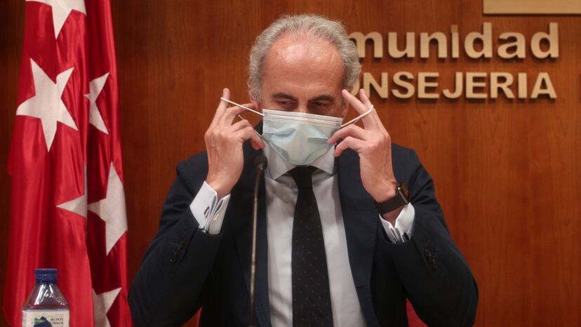 ¿Debe ponerse la mascarilla cuando camine por las calles de Madrid o acuda a un bar a tomarse una cerveza en una terraza? Sí, siempre y cuando no pueda mantenerse la distancia de más de un metro entre los miembros del grupo. ¿Debe ponerse la mascarilla cuando esté en casa con unos amigos? No, pero. Ese pero ha sido la única novedad en la primera rueda de prensa que ha convocado el consejero de Sanidad de la Comunidad, Enrique Escudero, en cuatro meses.