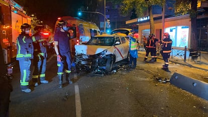 El taxista, de 68 años, también ha resultado lesionado, con una contusión en el tórax y en el abdomen producida por el globo de seguridad (airbag) del vehículo. El pasajero ha sido trasladado con pronóstico leve a un hospital. Los bomberos del Ayuntamiento de Madrid han desencajado el vehículo tras el choque, han limpiado la zona y han retirado la valla destrozada. Agentes de investigación de accidentes de la Policía Municipal se han hecho cargo de las investigaciones.