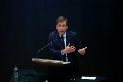 José Luis Martínez Almeida ha afrontado este miércoles su primer debate sobre el estado de la ciudad como alcalde. Un año al frente del Ayuntamiento que ha estado marcado por su gestión de la crisis. “Esta pandemia ha cambiado nuestras prioridades. Nadie se puede quedar atrás. Tenemos que atender todas las situaciones de vulnerabilidad que vive la ciudad", ha dicho. Almeida, que ha hablado sin apenas usar papeles durante más de una hora y media, ha hecho un repaso exhaustivo por las nueve áreas en las que se estructura la ciudad y ha anunciado nuevas medidas, como la peatonalización de 12 calles en ocho distritos a partir de este sábado, la instalación de más cámaras de seguridad en las calles, tarifas variables en parquímetros o la suspensión de las tasas de las terrazas para los hosteleros. Estas son las medidas anunciadas durante el pleno extraordinario: